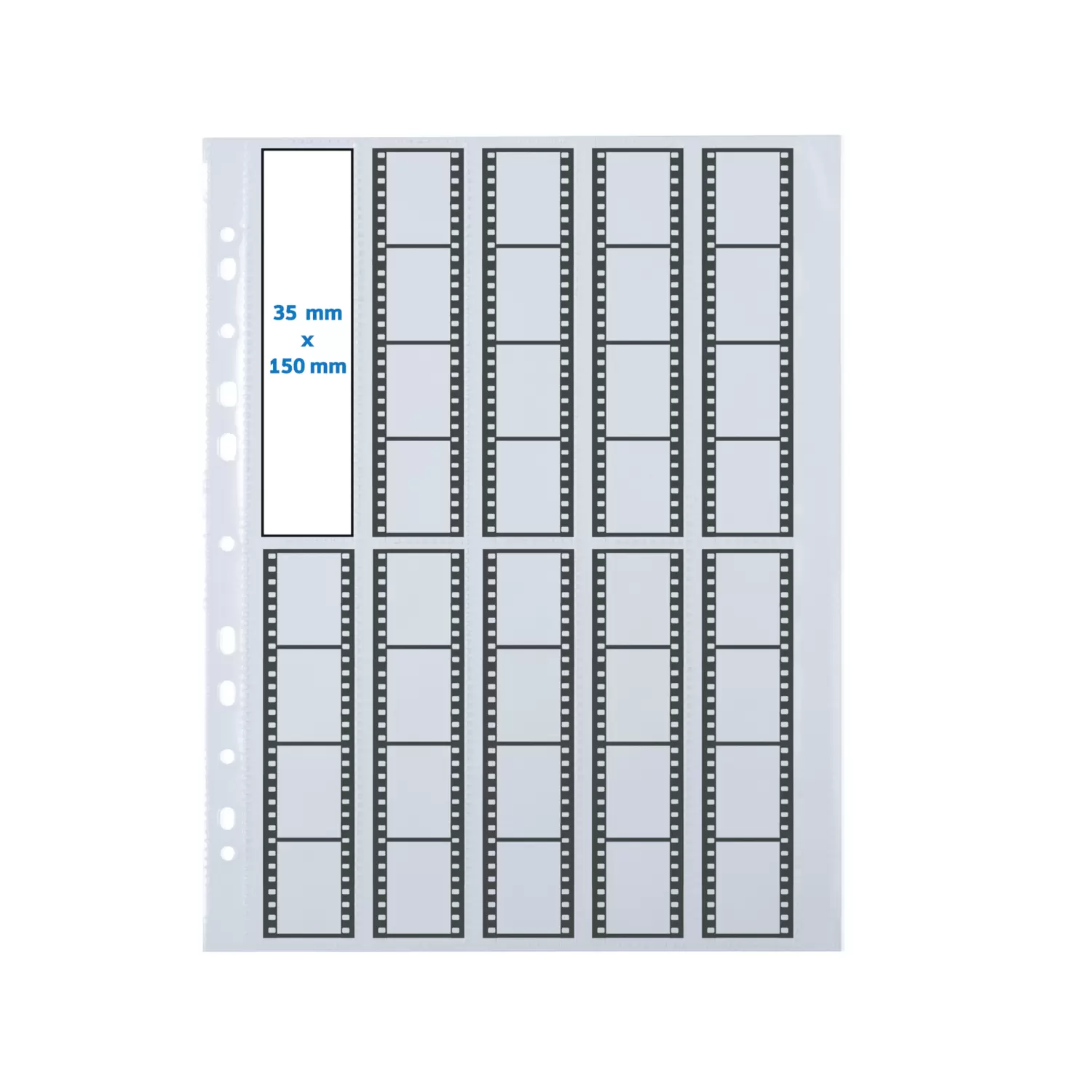 HERMA negative pockets for 35 mm negatives are ideal for neat and tidy storage and archiving of negative stripes. They are made of transparent, robust and plasticizer-free polypropylene and offer space per pocket for 10 stripes of 4 pictures each in 35 mm format. The particular feature are special safety tabs that prevent the negatives from falling out of the pockets. This makes it easy to insert and remove the negatives and yet they are optimally protected. One pocket measures approx. 24.5 x 31.5 cm and can be easily filed in files, ring binders or photobooks thanks to the Euro perforation. For optimal protection, we recommend the 4 ring version. There are 25 pockets in a pack and thus enough space for up to 100 stripes.