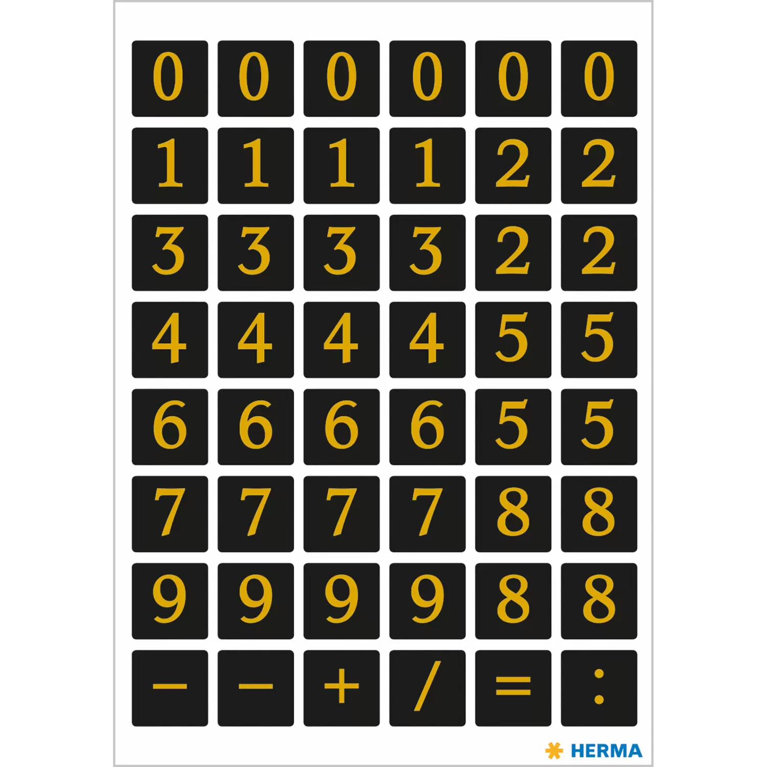 Self-adhesive numbers for identifying, labelling and marking.