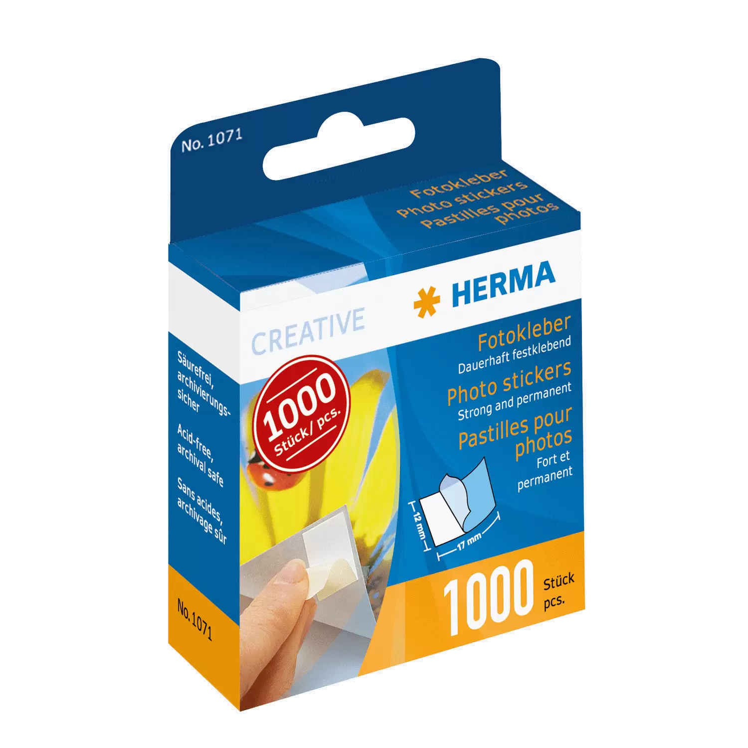 - HERMA photo stickers, permanent adhesive, double-sided self-adhesive paper stickers, front side covered with protective paper