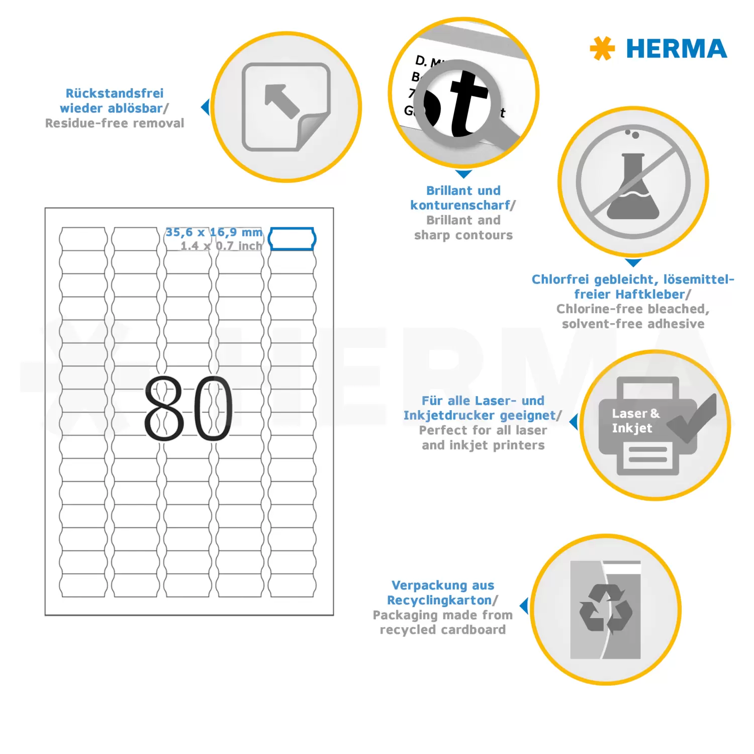 Price labels A4, 35,6 x 16,9 mm, white, removable