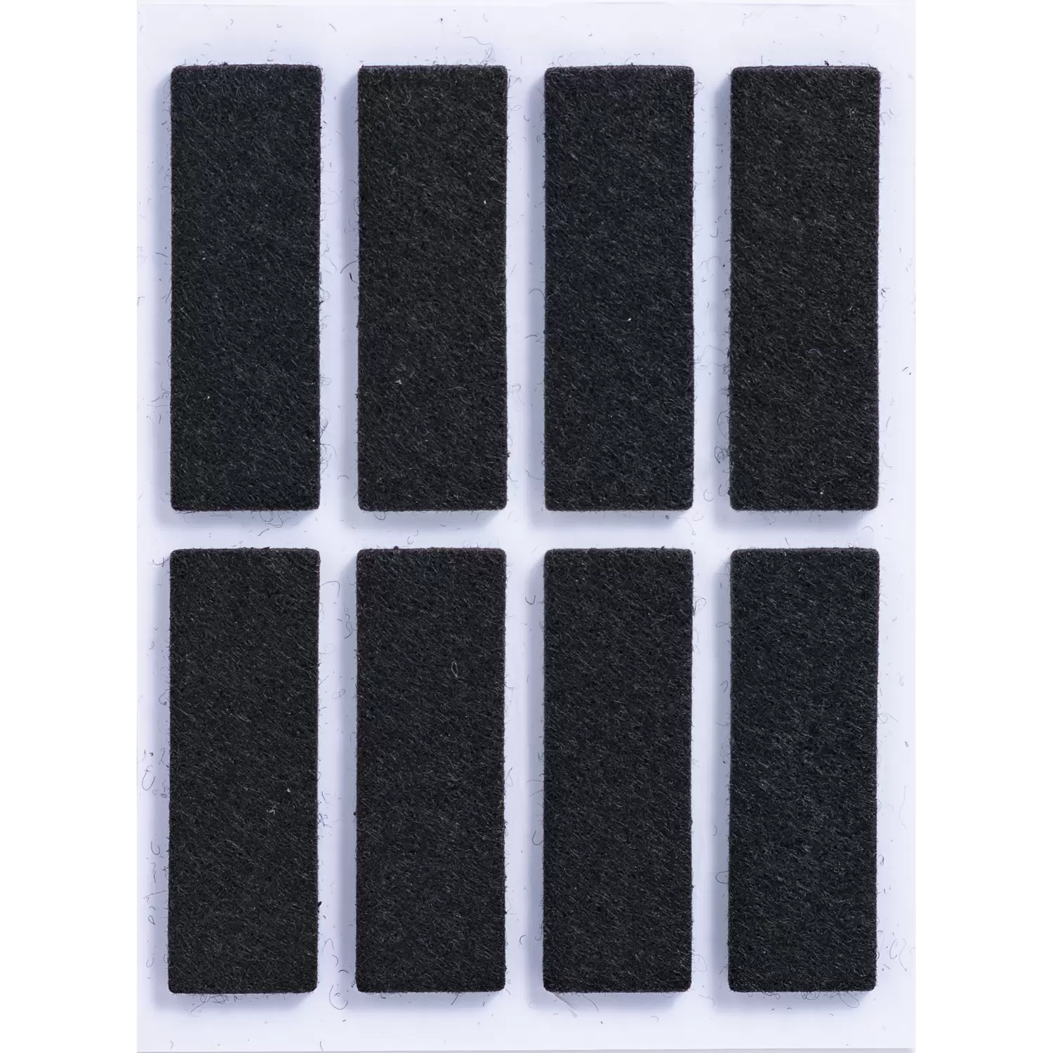 Feltpads are a simple and easy solution to protect parquet, laminate, vinyl, cork or even delicate tile floors from scratches and damage when moving furniture or adjusting chairs.They also reduce scratching noise to a minimum. They can be used to protect surfaces by sticking them to the bottom of home accessories such as vases, flower pots or fruit bowls, as well as computer keyboards, hole punches, staplers and other items. This way, tabletops and work surfaces can be kept intact for a long time. The feltpads are made of extra soft material, self-adhesive, quick and easy to apply. They last long and reliably and can also be removed again easily and without residue. A pack includes 8 feltpads in the colour black in the size 15 x 45 mm.