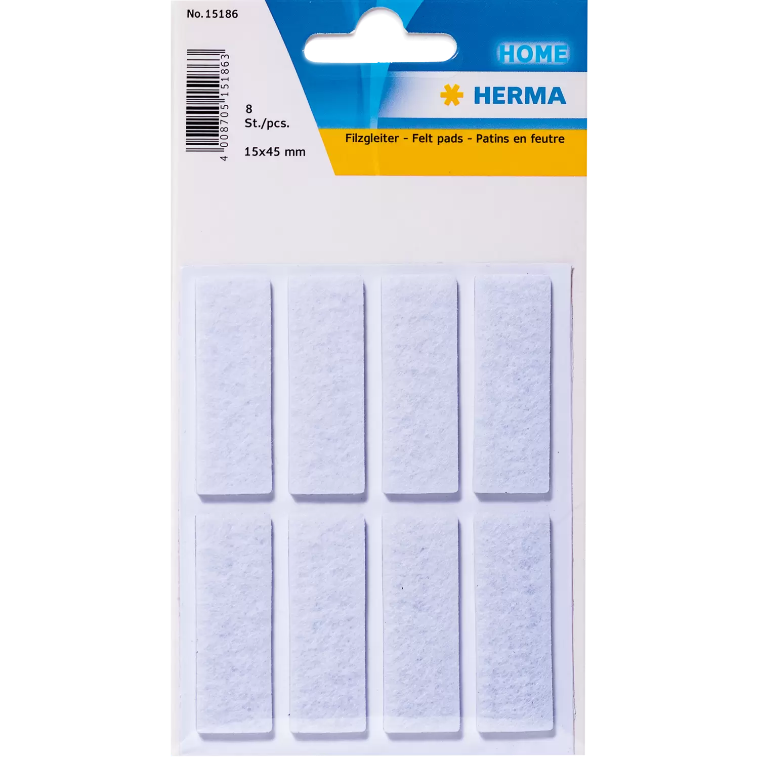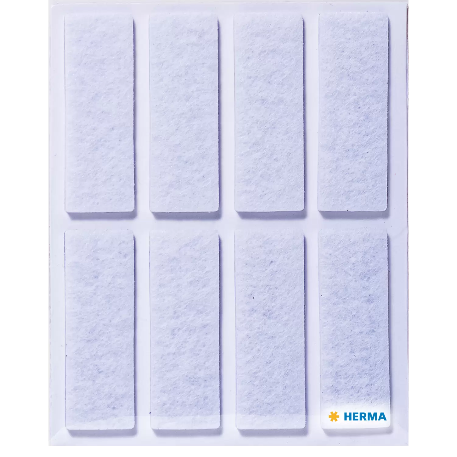 Feltpads are a simple and easy solution to protect parquet, laminate, vinyl, cork or even delicate tile floors from scratches and damage when moving furniture or adjusting chairs.They also reduce scratching noise to a minimum. They can be used to protect surfaces by sticking them to the bottom of home accessories such as vases, flower pots or fruit bowls, as well as computer keyboards, hole punches, staplers and other items. This way, tabletops and work surfaces can be kept intact for a long time. The feltpads are made of extra soft material, self-adhesive, quick and easy to apply. They last long and reliably and can also be removed again easily and without residue. A pack includes 8 feltpads in the colour white in the size 15 x 45 mm.