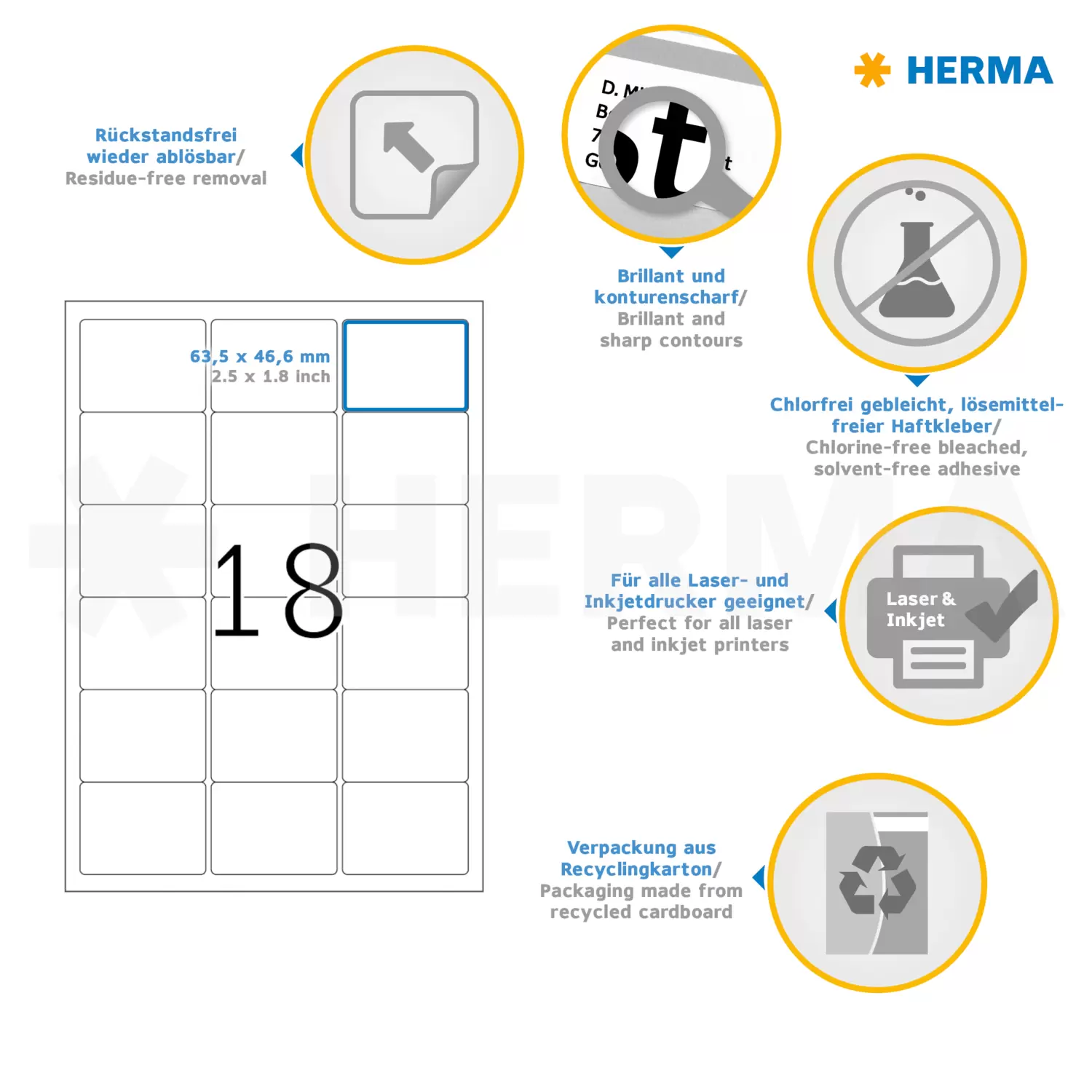 Removable labels A4, 63,5 x 46,6 mm, white