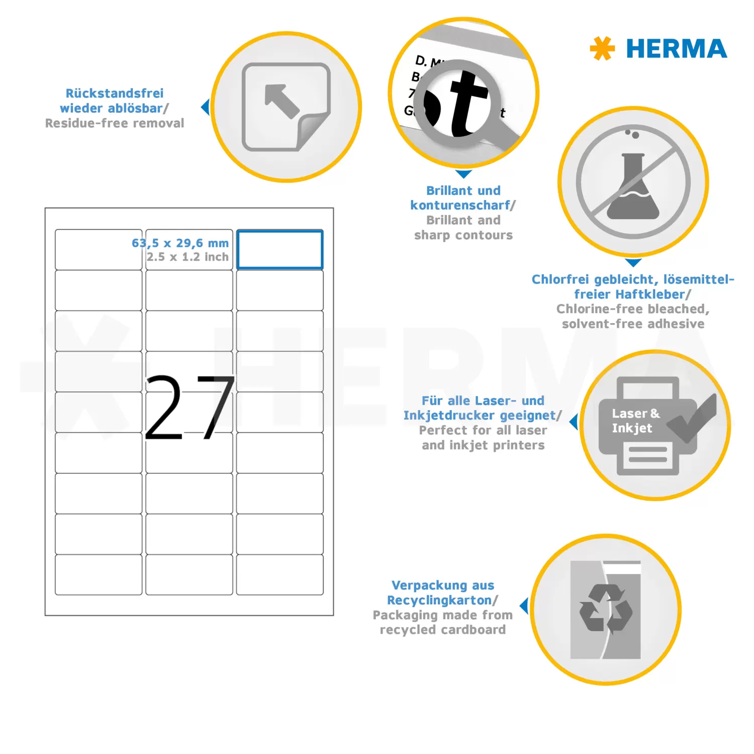 Removable labels A4, 63,5 x 29,6 mm, white