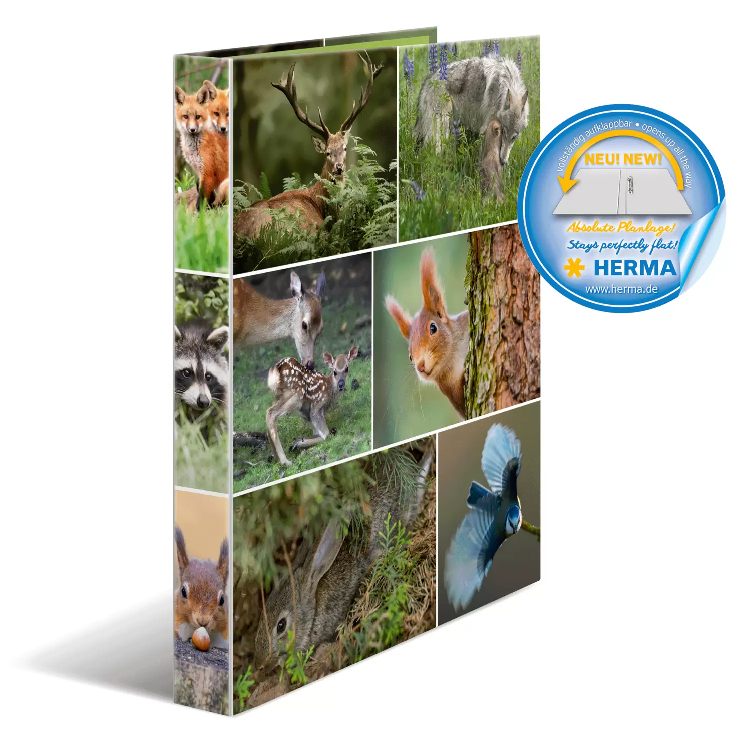 Order is essential - but fun too! Who really enjoys dealing with paperwork? That's right, nobody. But at some point, documents, letters, statements and notices have to be sorted and filed. With HERMA ring binders in a practical format for all papers up to A4 size, all documents can be stored neatly and clearly arranged. If a document is needed for authorities or for an insurance company, everything is quickly to hand. And the binders are also ideal for private use: for collecting recipes, planning holidays or as a family planner - everything has its place here. And the best thing is: with the great animal designs, the folder series on the shelf is a real eye-catcher. After all, the eye helps to organize. With the brand new design forest animals you can take the cute forest inhabitants home. The ring binder is designed with 16 great animal photographs, including deer, rabbits, foxes and squirrels. The practical 2-ring mechanism and the metal compressor bar ensure optimal hold.