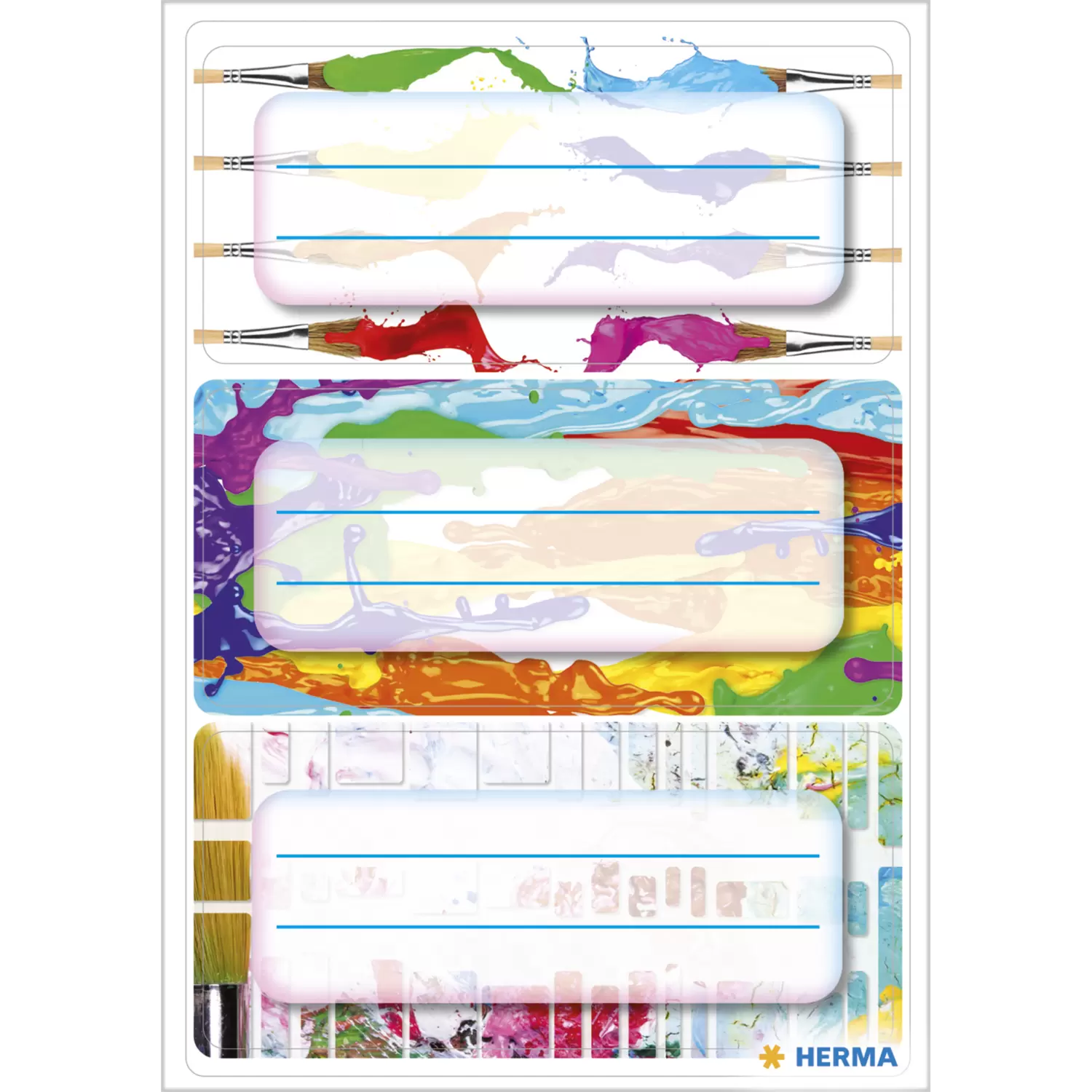 Practical and colourful, ideal for artists of all ages who love to paint, draw, craft and more! These beautiful school labels with the design "Colours" in 76x35 mm format, combine pretty design and functionality. Simply write on the self-adhesive paper stickers quickly and easily by hand, peel them off, stick them on - that's all. So no book and exercise book can be mixed up at school, kindergarten or among friends.