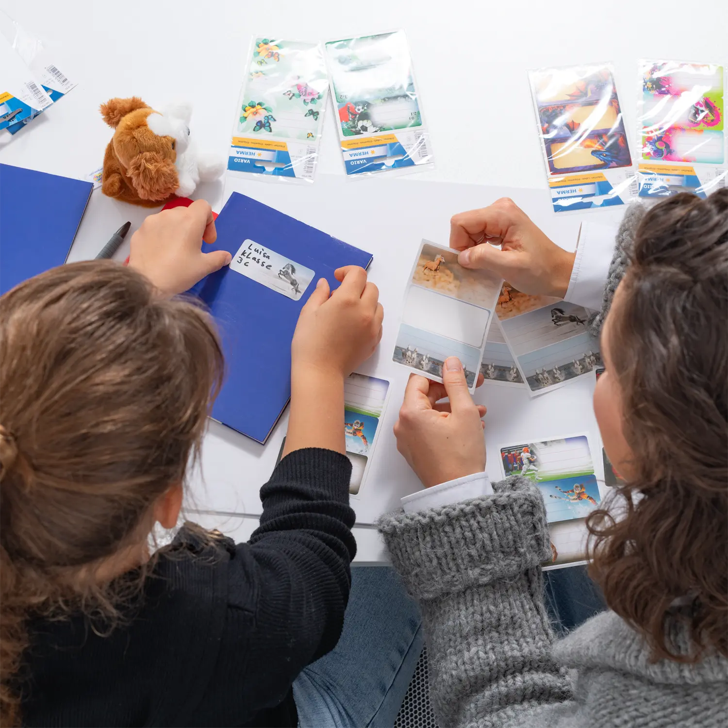 Practical and colourful, for horse-loving animal fans: Kids admire the power, speed and endurance of horses. These beautiful school labels in 76x35 mm format, combine pretty design with perfect functionality. Simply write on the self-adhesive paper stickers quickly and easily by hand, peel them off, stick them on - that's all. So no book and exercise book can be mixed up at school, kindergarten or among friends.