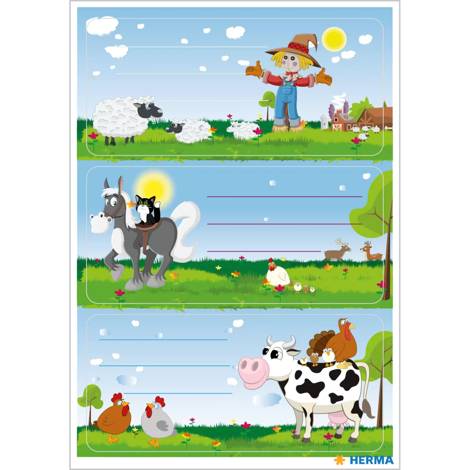 Practical and ideal for all little farmyard fans who prefer to spend their holidays with cats, cows, chickens and sheep. These beautiful school labels in 76x35 mm format, combine cute design with perfect functionality. Simply write on the self-adhesive paper stickers quickly and easily by hand, peel them off, stick them on - that's all. So no book and exercise book can be mixed up at school, kindergarten or among friends.