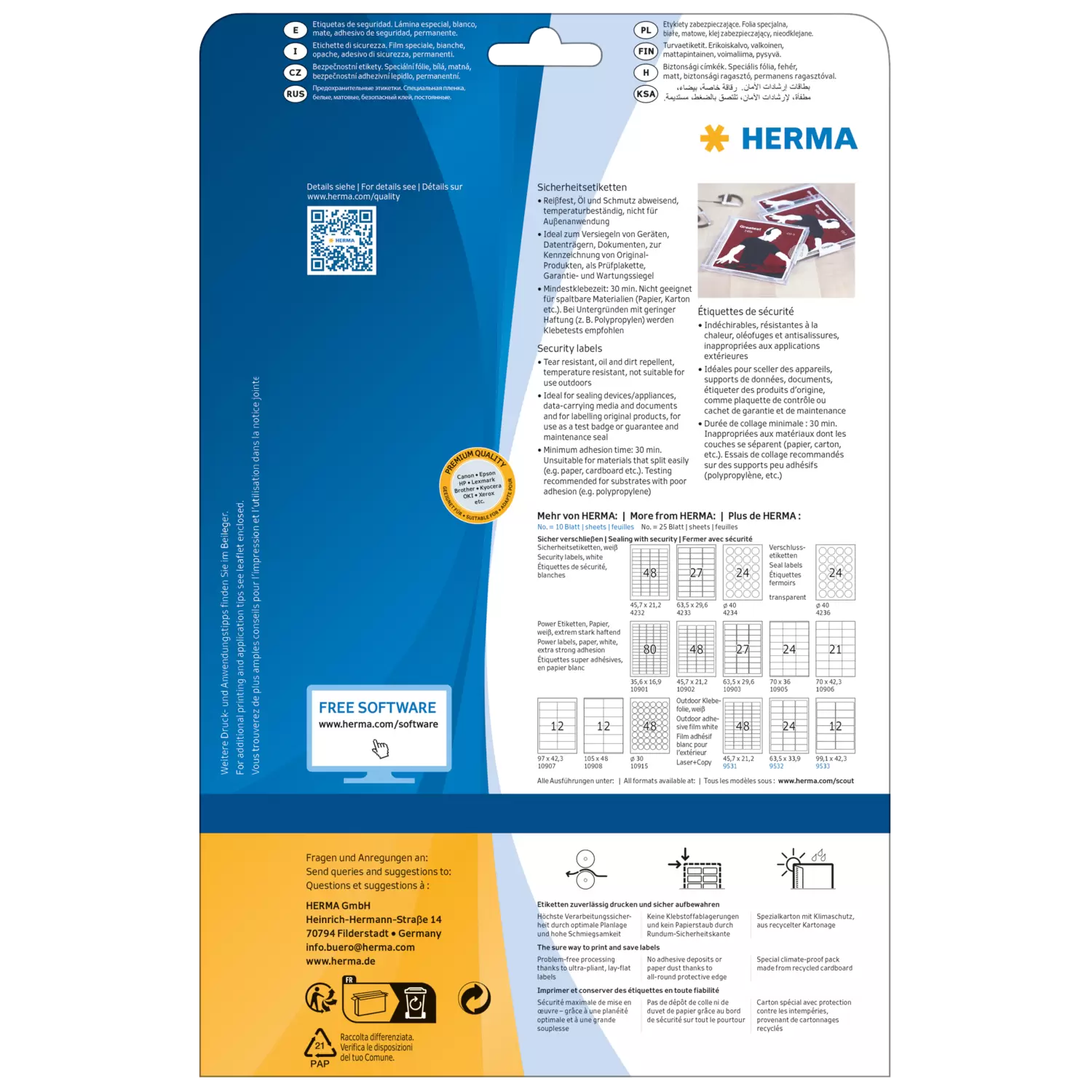 - Visible residue left behind after removal protects against tampering. Label cannot be reapplied.