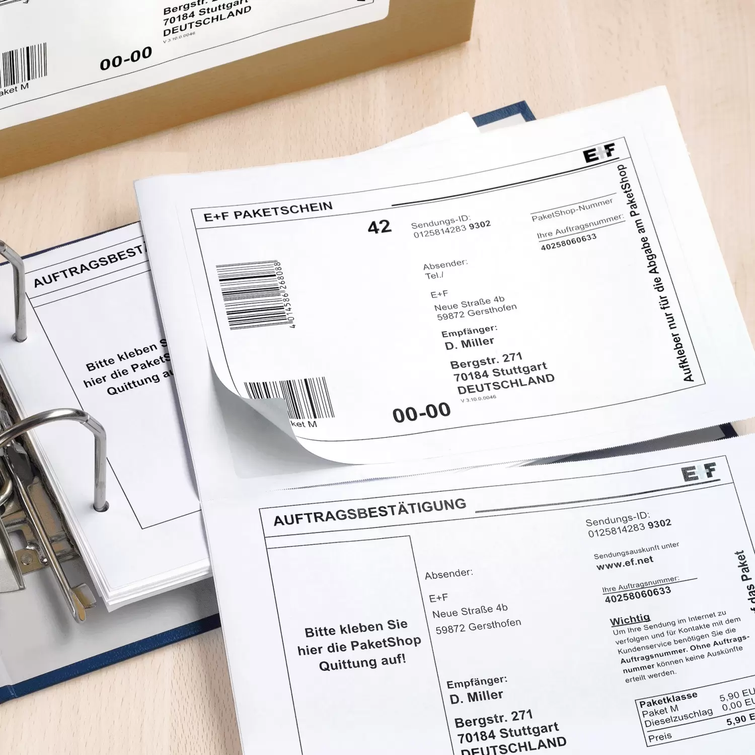 Shipping label + delivery note A4, 182 x 130 mm, white, opaque, permanent adhesion