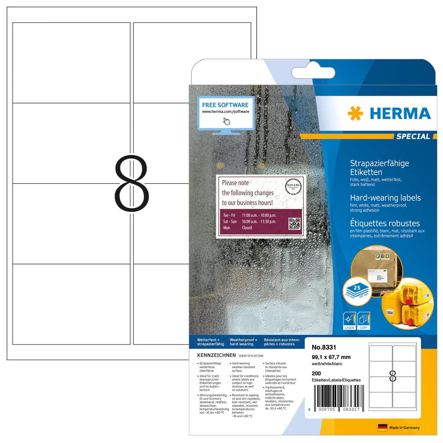 Weatherproof shipping labels A4, 99,1 x 67,7 mm, white, made of film, extremely strong adhesion