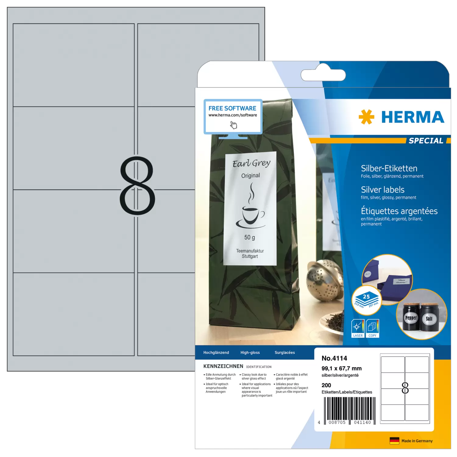 Silver foil labels A4, 99,1 x 67,7 mm, glossy, weatherproof, permanent adhesion