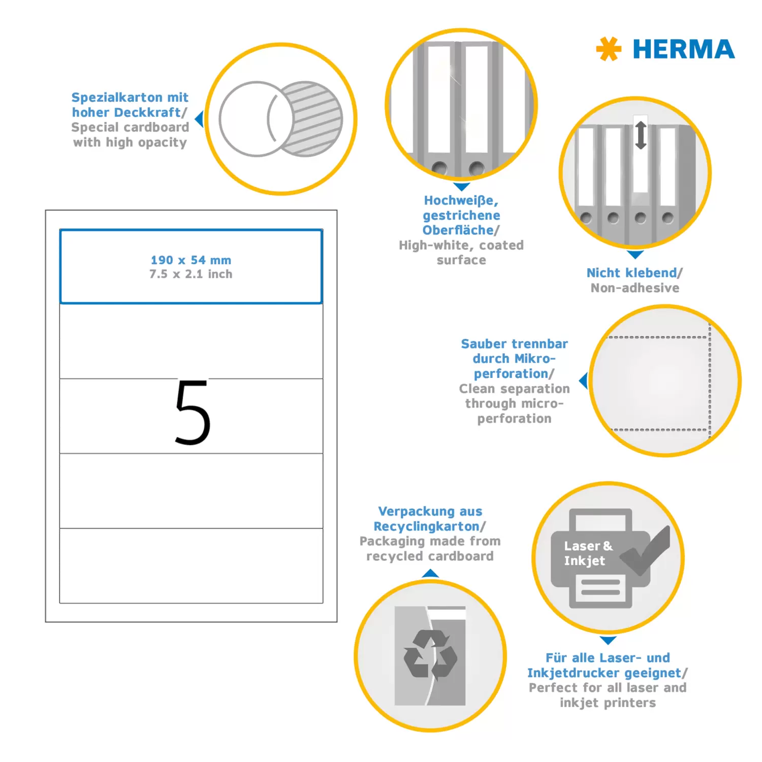 - White cardboard, microperforation ensures clean separation