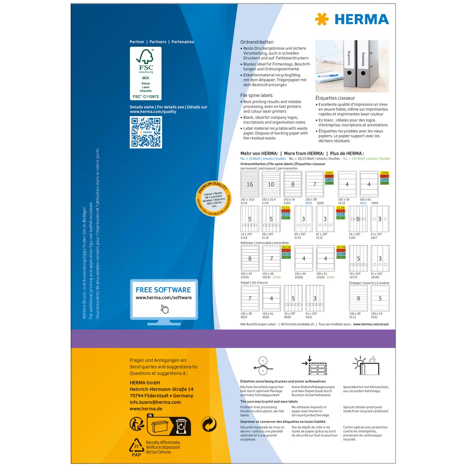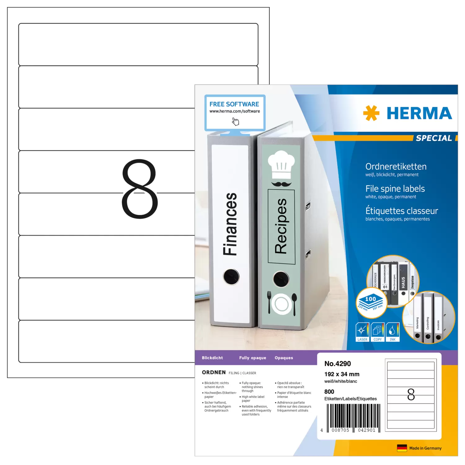 File labels A4, 192 x 34 mm, white, opaque, for narrow files (short)