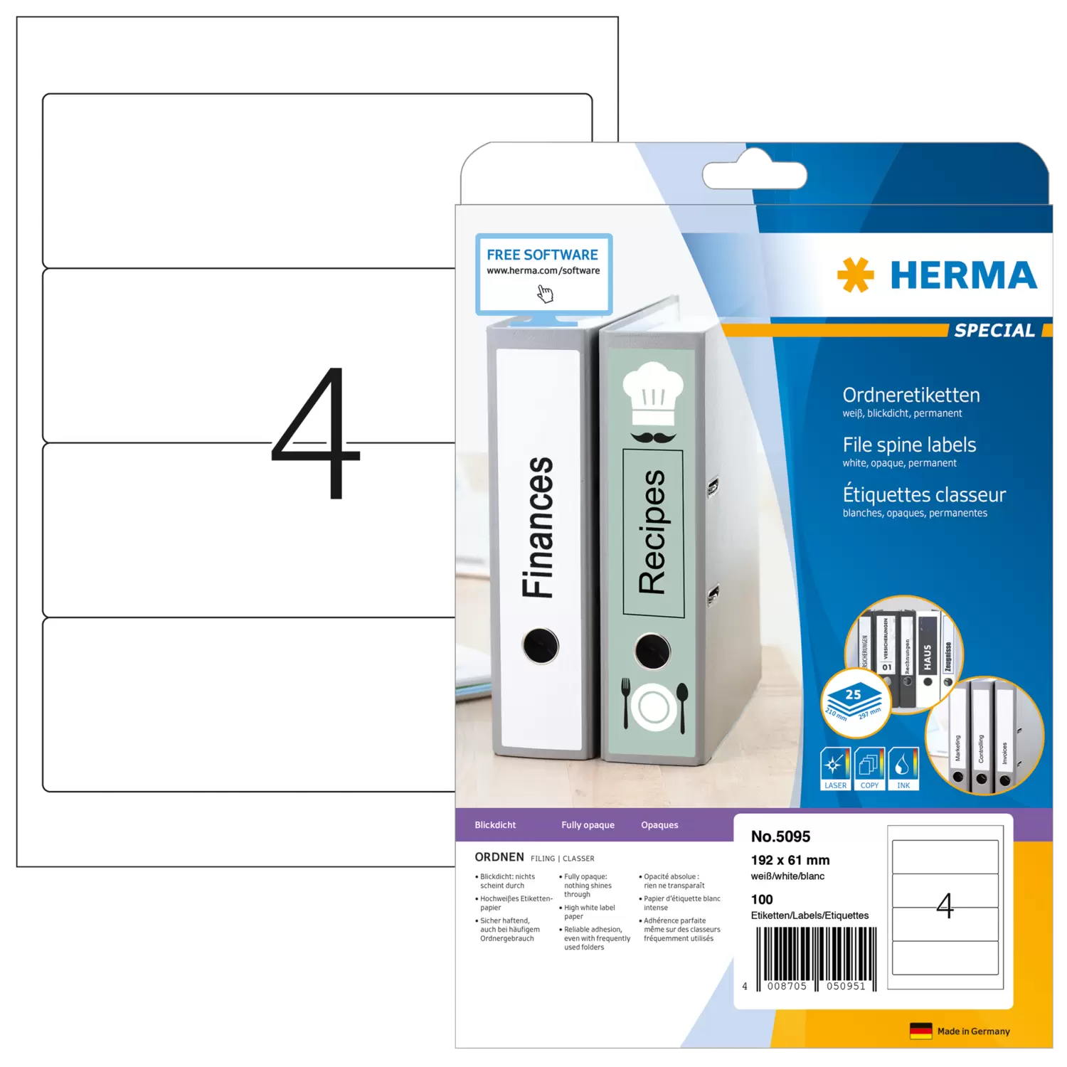 File labels A4, 192 x 61 mm, white, opaque, for wide files (short)