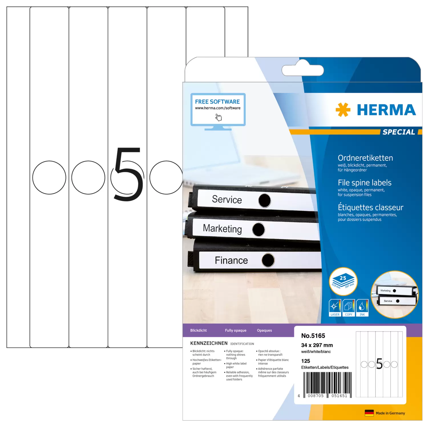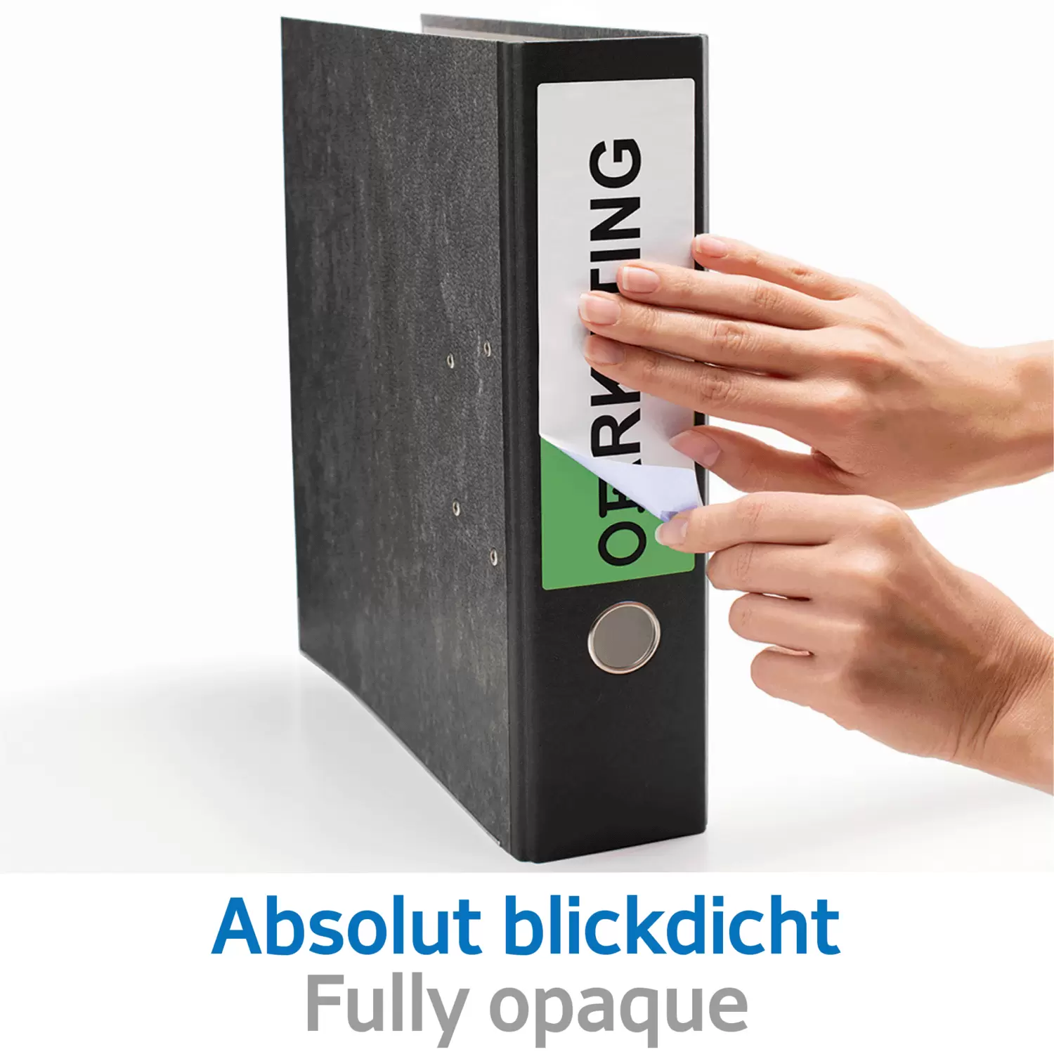 - File spine labels adhere firmly, even on files in frequent use.