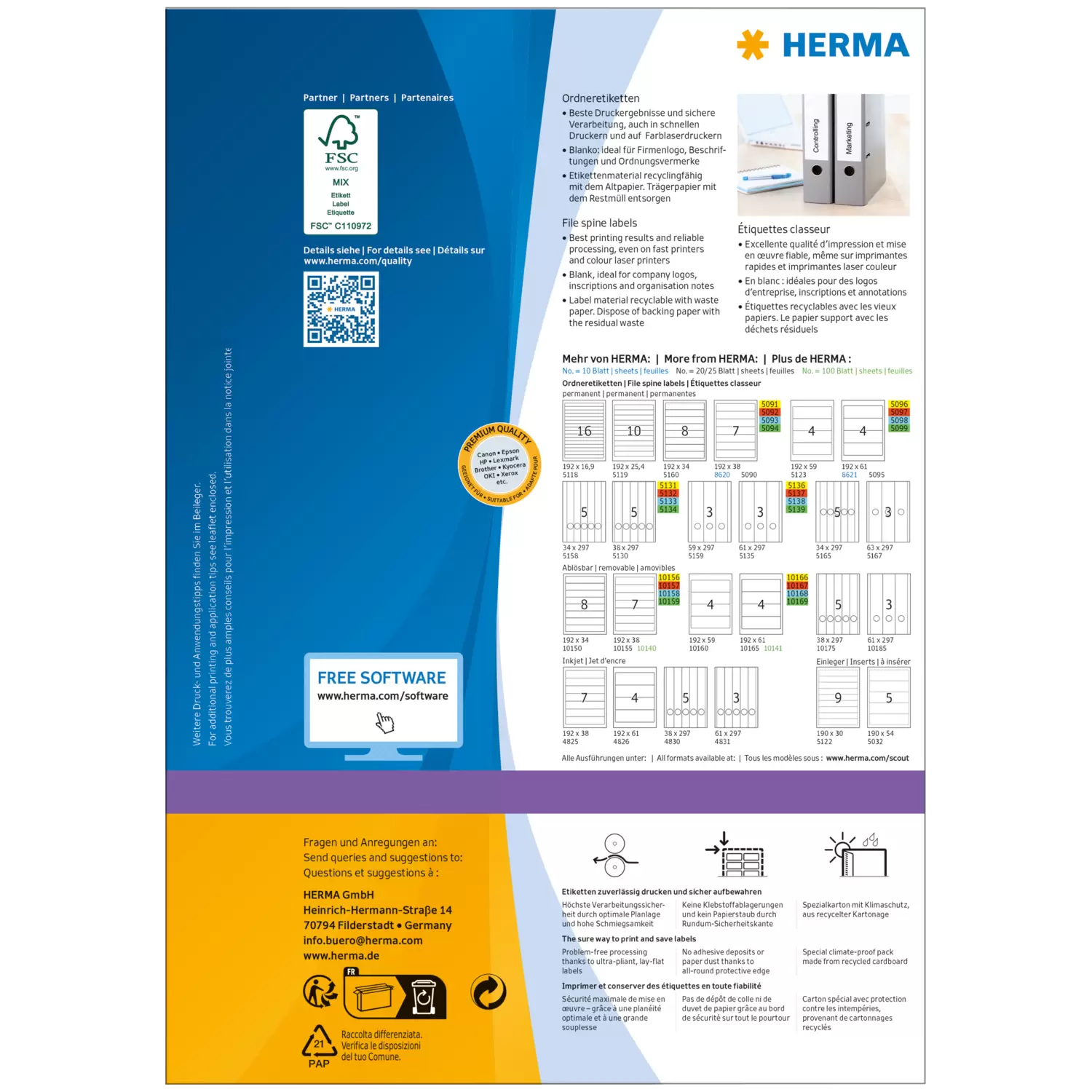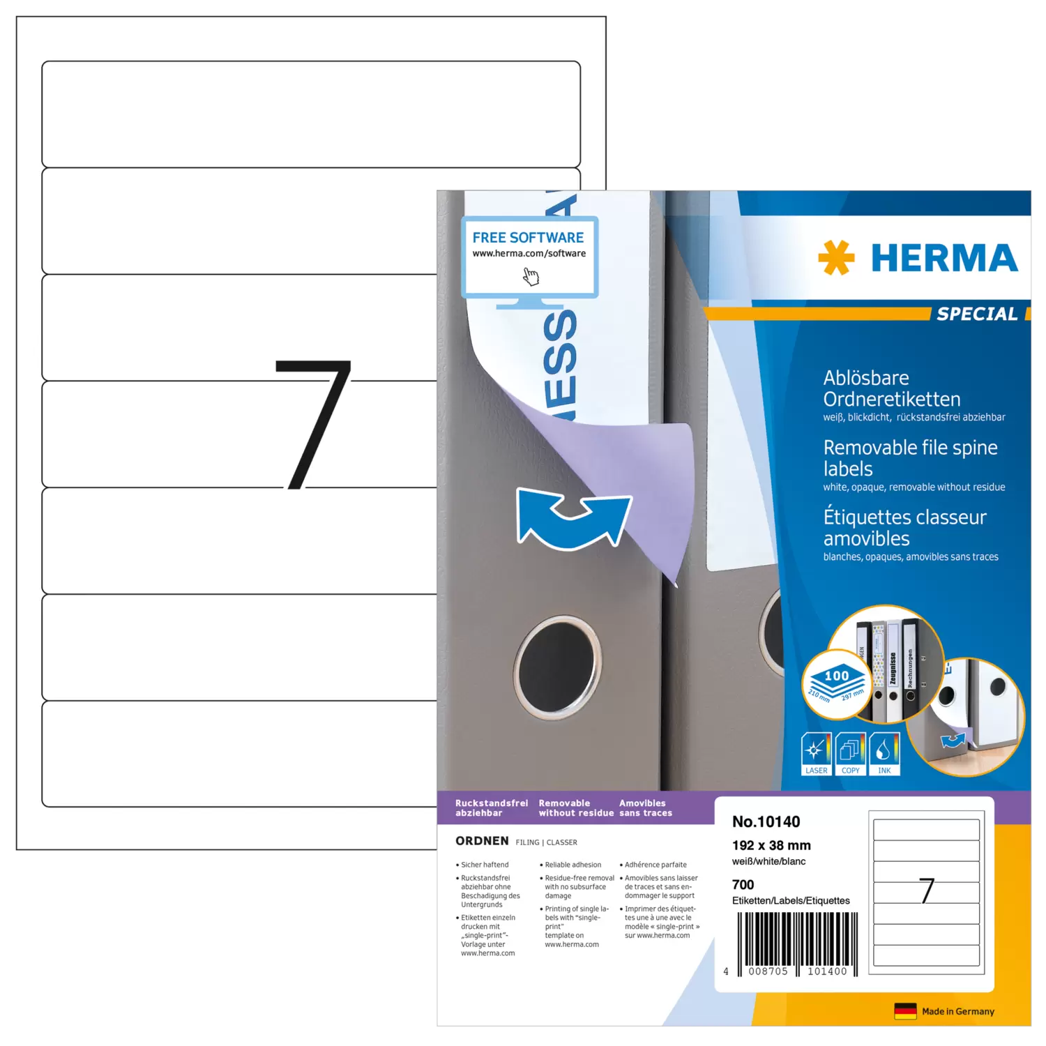 Removable file spine labels A4, 192 x 38 mm, white, opaque, for narrow files (short)