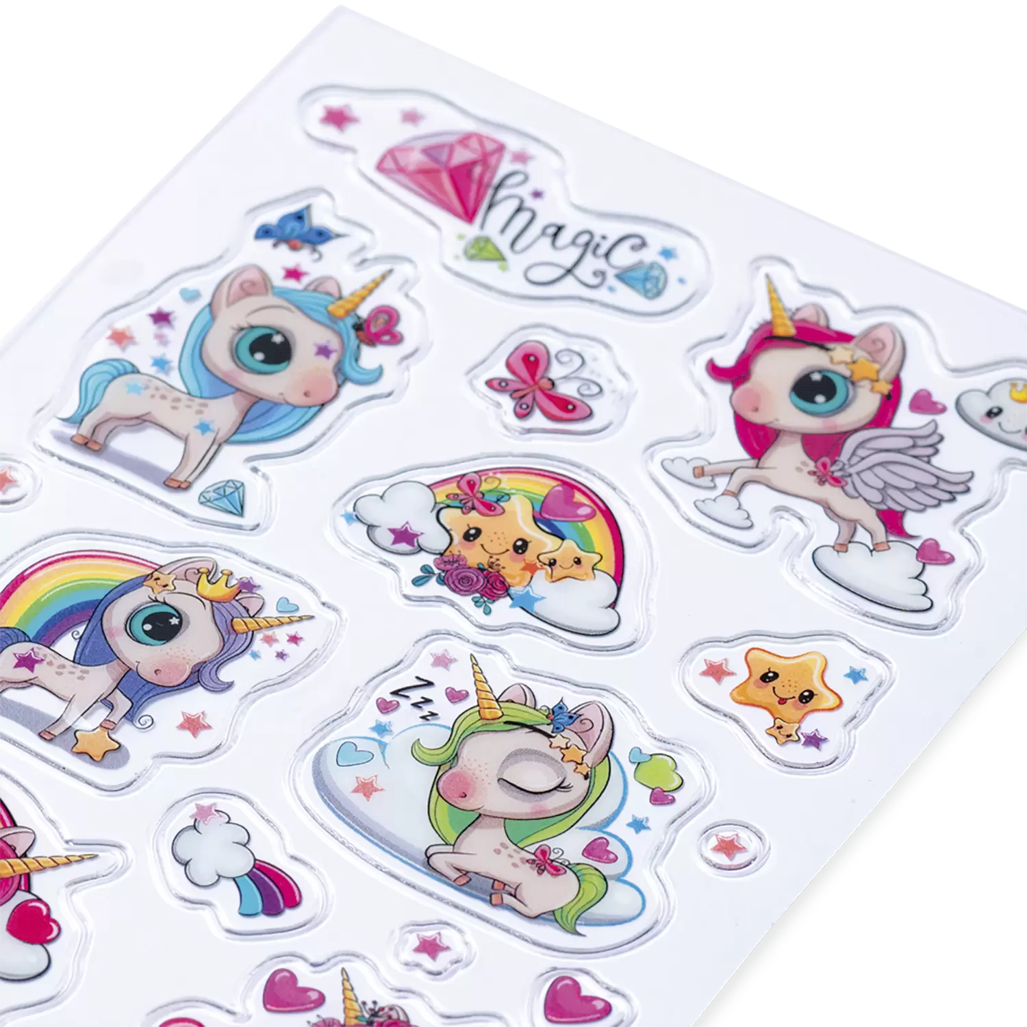 Beautifully drawn unicorn stickers, perfect for collecting, swapping and decorating! Unicorns are very popular with girls and boys, the mythical creatures inspire and invite you to dream. These stickers are made of robust transpuffy foil and can be removed and reapplied many times. They are permanent adhesive and self-adhesive on almost all surfaces. They can be easily peeled off and stuck on as desired. Ideal as decoration for exercise books, files and folders.