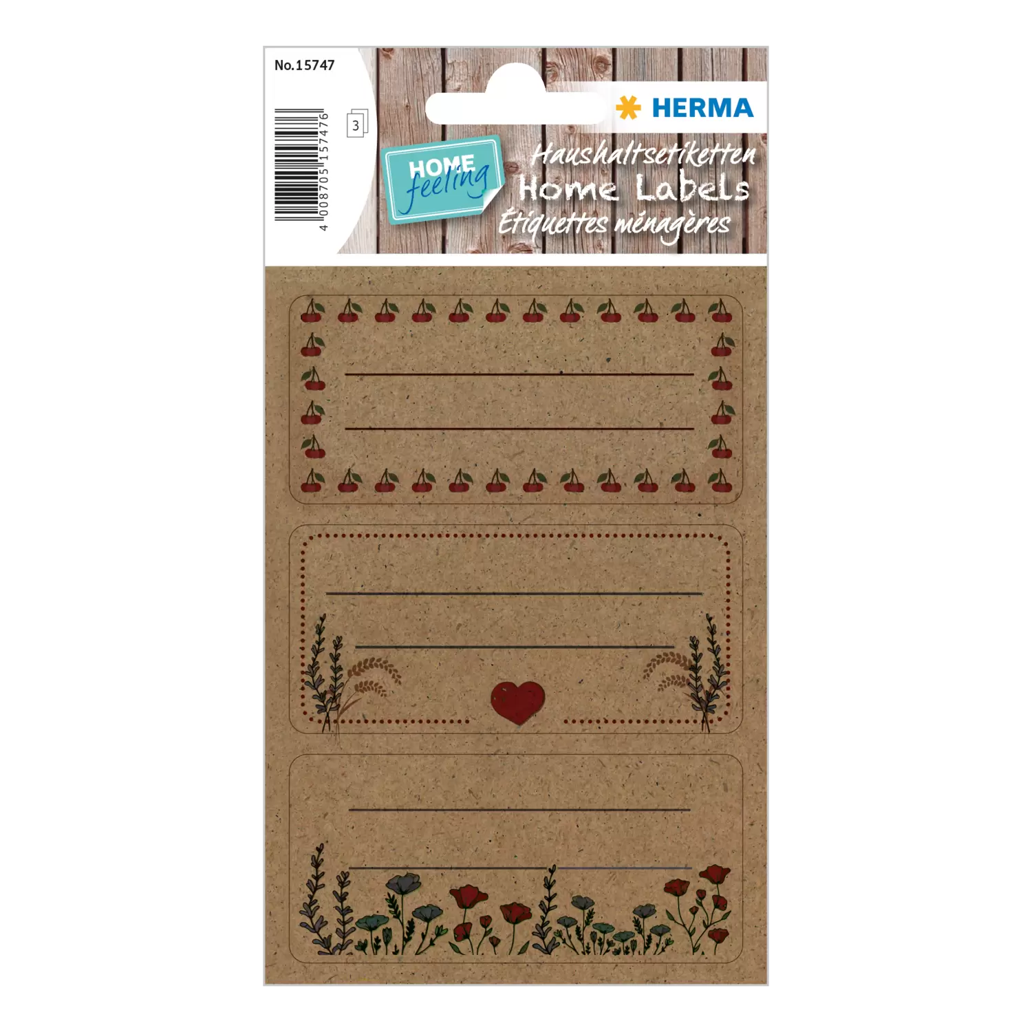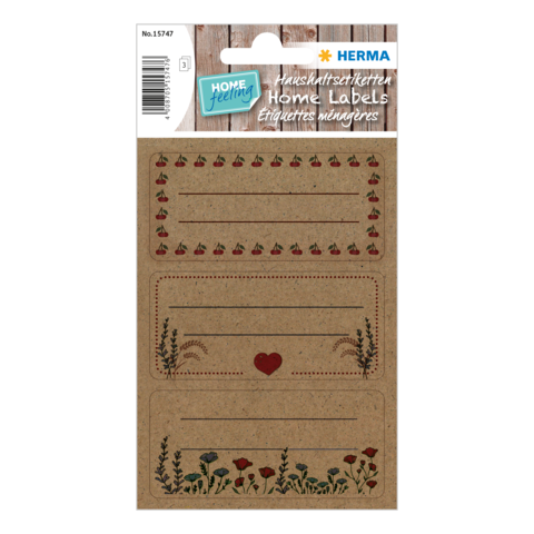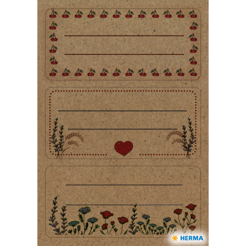 Our kitchen labels made of silphie paper are a great sustainable solution for labelling food, storage containers and other items in your kitchen. Made from environmentally friendly silphie paper, these labels are characterized by their natural brown colour. Each pack contains 9 rectangular labels in format 76 mm x 35 mm, illustrated with delicate fruit or flower and blossom patterns. Silphie paper is made from a sustainable plant that is grown in Europe. The cultivation of silphie promotes biodiversity and creates valuable habitats for insects. Compared to traditional paper resources, silphie requires less water and no pesticides need to be used. Thus, our kitchen labels made of silphie paper contribute to an environmentally friendly kitchen organization. The high-quality labels adhere reliably to a variety of surfaces, yet can be removed easily without leaving any residue. They offer a stylish way to label your spices, flour, sugar and storage containers and keep your kitchen organized. Functionality, aesthetics and environmental awareness - that's HERMA's Silphie labels.