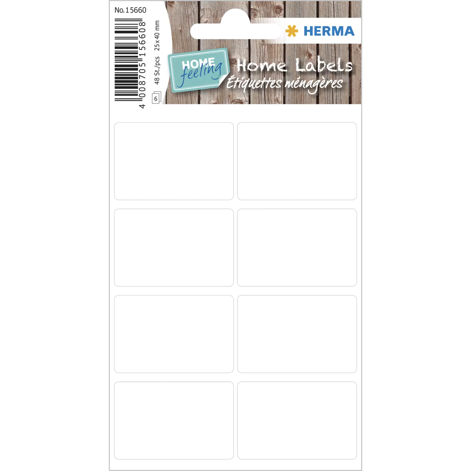 The little helpers in matters of order at home: What belongs to whom? Where does what belong? What's in there? Labelling and marking helps against the daily chaos in the household, saves nerves when finding things again and also beautifies the home. The practical self-adhesive labels for hand lettering from HERMA HOME in the small handy pack belong in every drawer. Spices, Tupperware, supplies and utensils in the kitchen, tools, boxes, crates and shelves in the cellar, drawers and much more can be labelled easily and clearly anywhere in the home. One pack includes 48 white permanent adhesive labels in the format 25 x 40 mm. The surface is matt and can be written on with felt tip pens and ballpoint pens without smearing. The rounded corners make it easy to peel the labels off the backing paper and stick them on as desired. Please note that the labels are not suitable for printers.