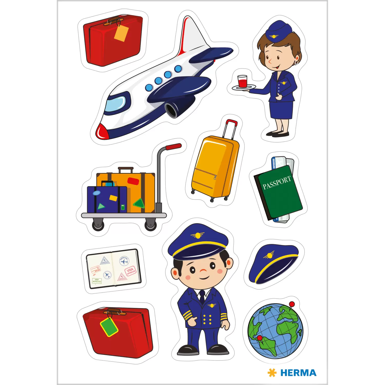 Colourful paper stickers with exciting pilot and airplane motifs. Each package contains 3 sheets, each with 11 different stickers. The stickers are made of high-quality paper, are permanently adhesive and self-adhesive on almost all surfaces. They can be easily peeled off and stuck on as desired. Ideal as decoration for exercise books, files and folders, for handicrafts or for collecting and swapping.