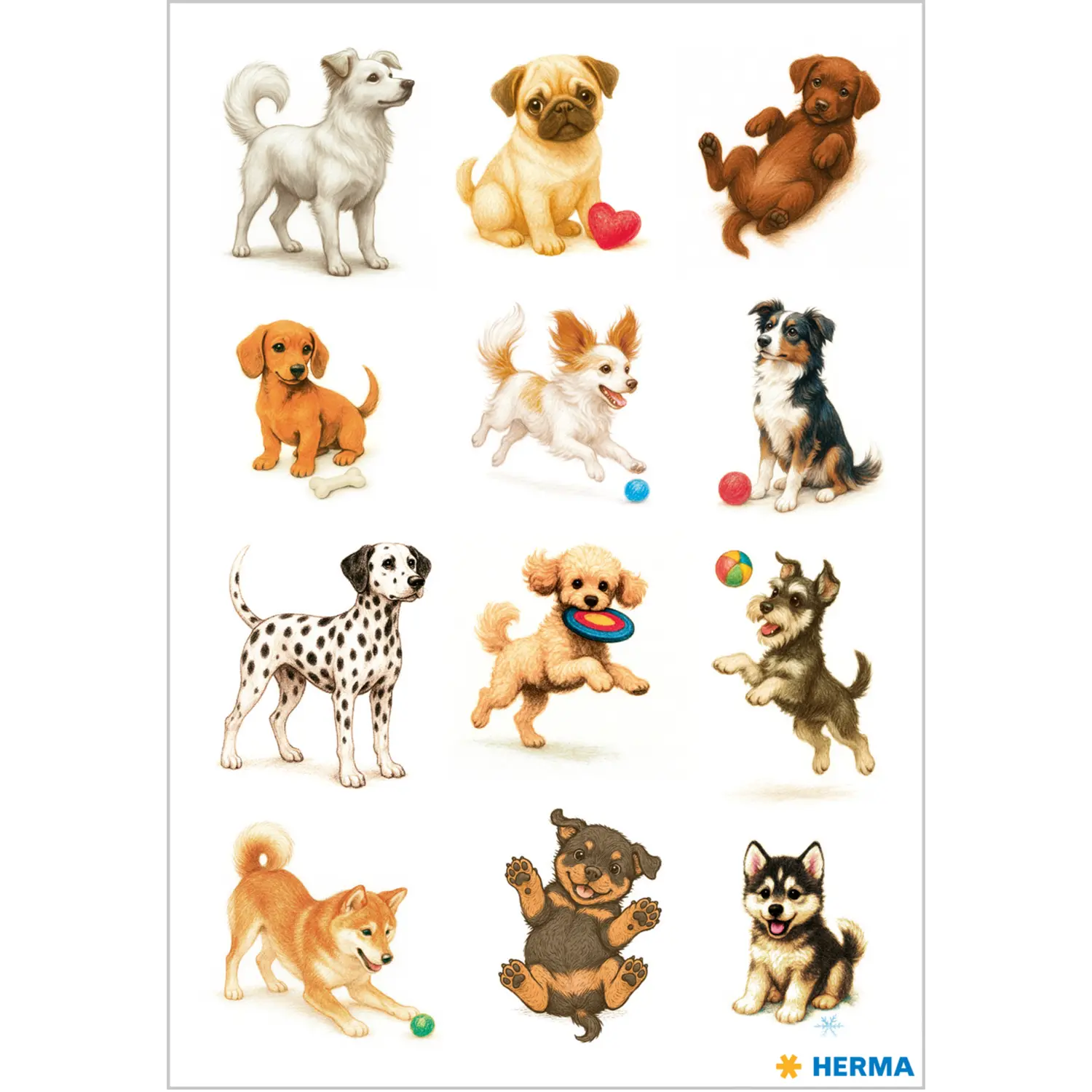 These playful dog stickers are bursting with joy of life: with their big jumps and cute expressions, these lovingly drawn four legged friends will steal the hearts of every dog lover. From cheeky puppies with big eyes to clever ball chasers, each motif captures a different charming scene from everyday life with dogs. Whether for collecting and trading or for embellishing friendship books, scrapbooks, or greeting cards, these dog stickers spread cheer everywhere. A special extra that will make all dog lovers smile while crafting and decorating.