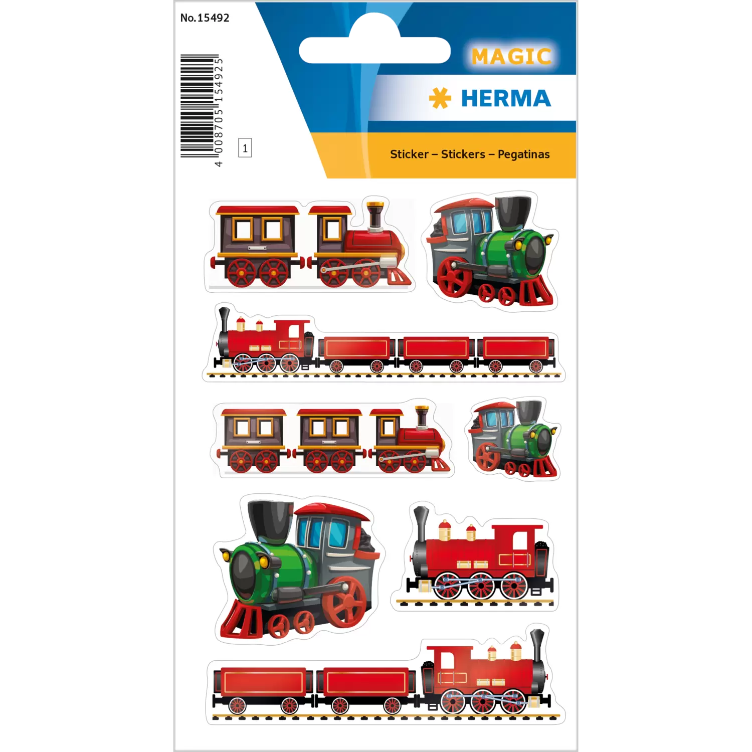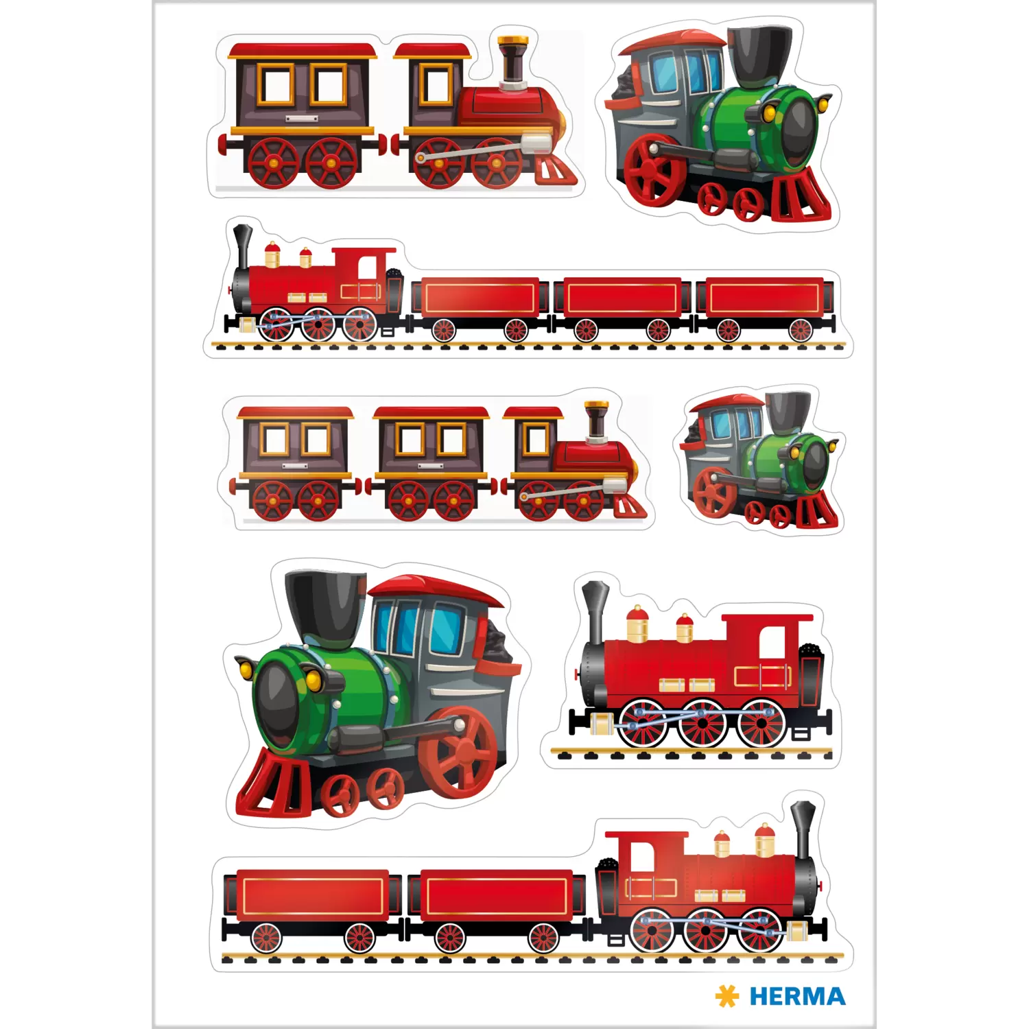 All aboard! Exciting film stickers with train and railway pictures, self-adhesive and long-lasting, ideal for collecting and swapping. The stickers, made of rugged film, can be removed and reapplied over and over. They are ideal for decorating exercise books, files, folders and many other items.