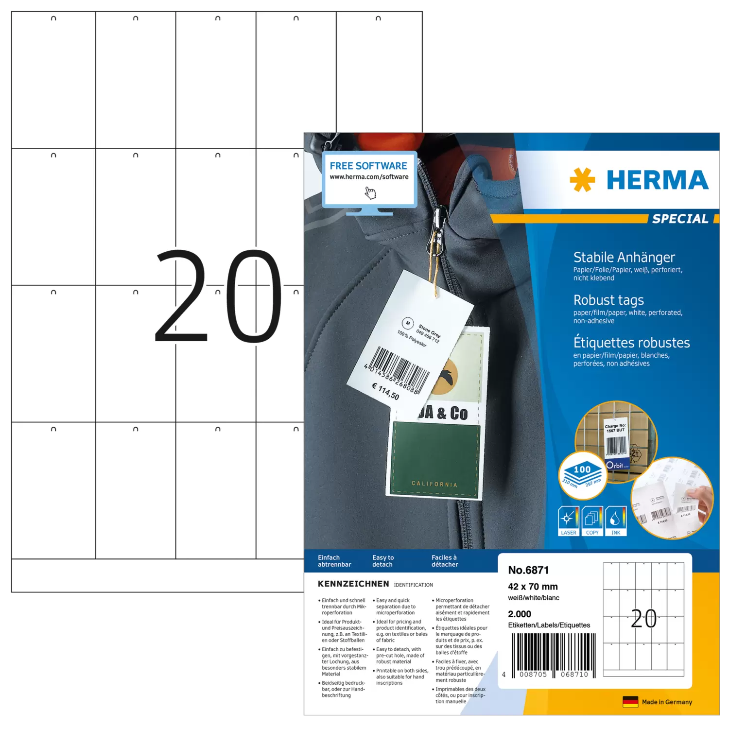 Robust tags A4, 42 x 70 mm, white, perforated, non-adhesive, printable