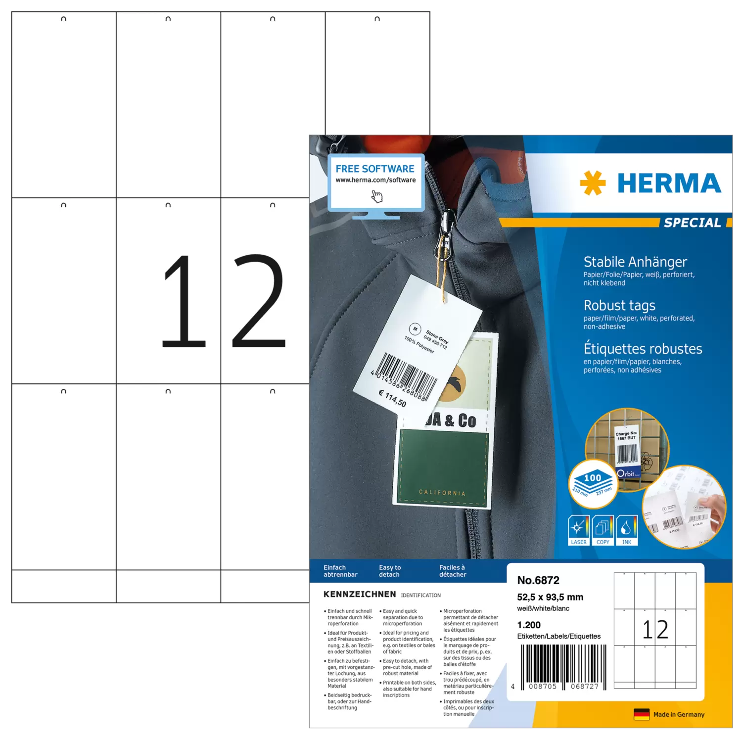 Robust tags A4, 52,5 x 93,5 mm, white, perforated, non-adhesive, printable