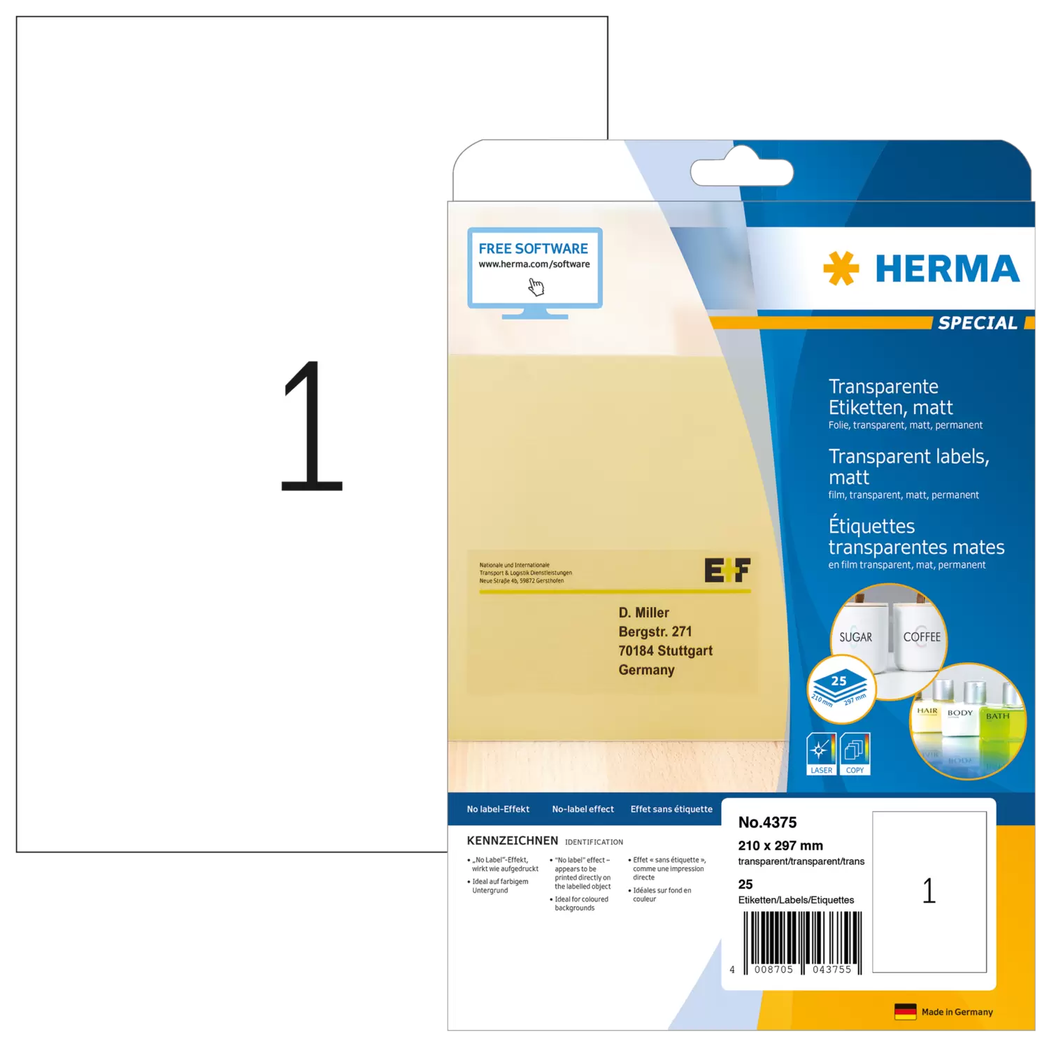 Transparent film labels, matt A4, 210 x 297 mm, weatherproof, permanent adhesion