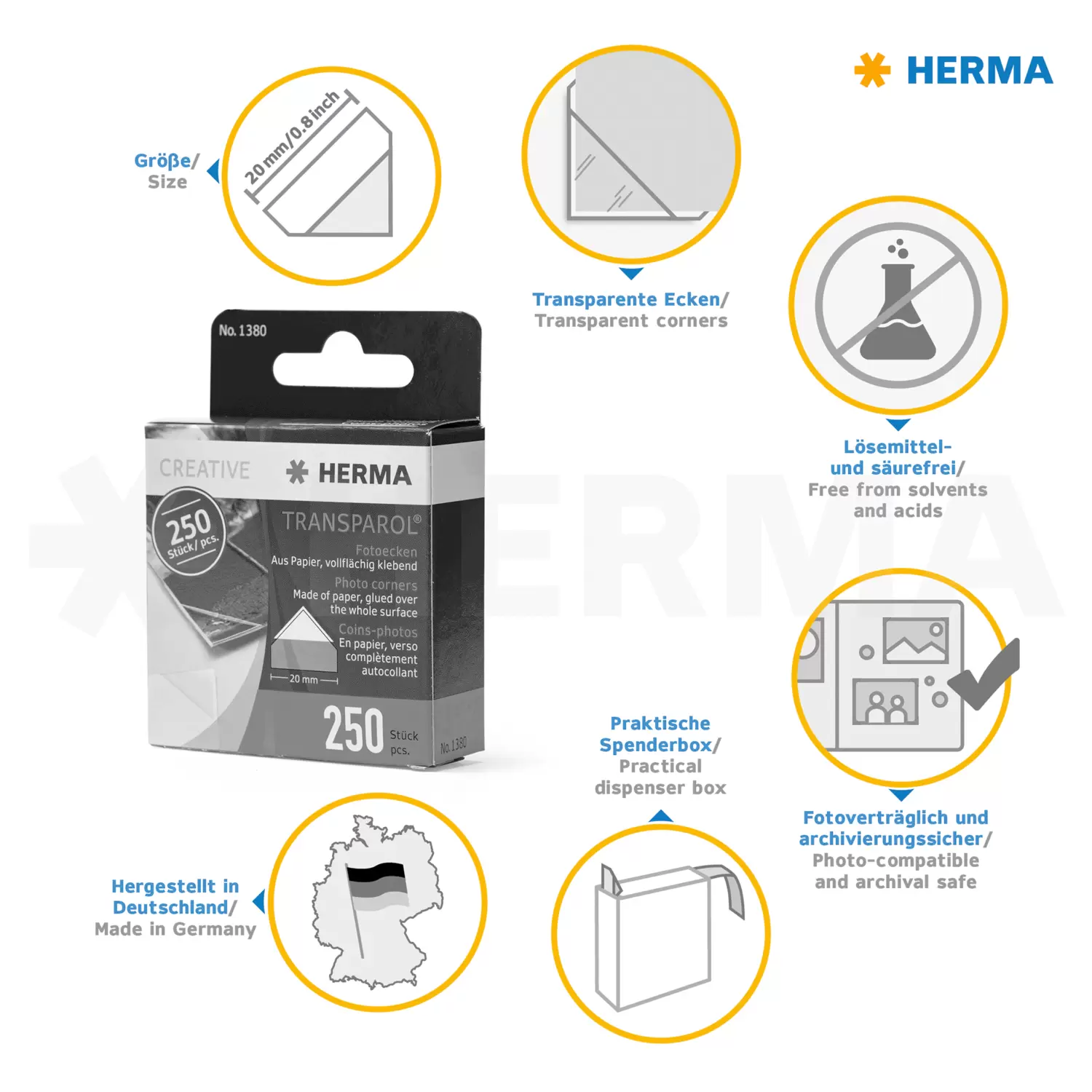 • HERMA Transparol photo corners, self-adhesive, with film corner, for inserting photos and postcards