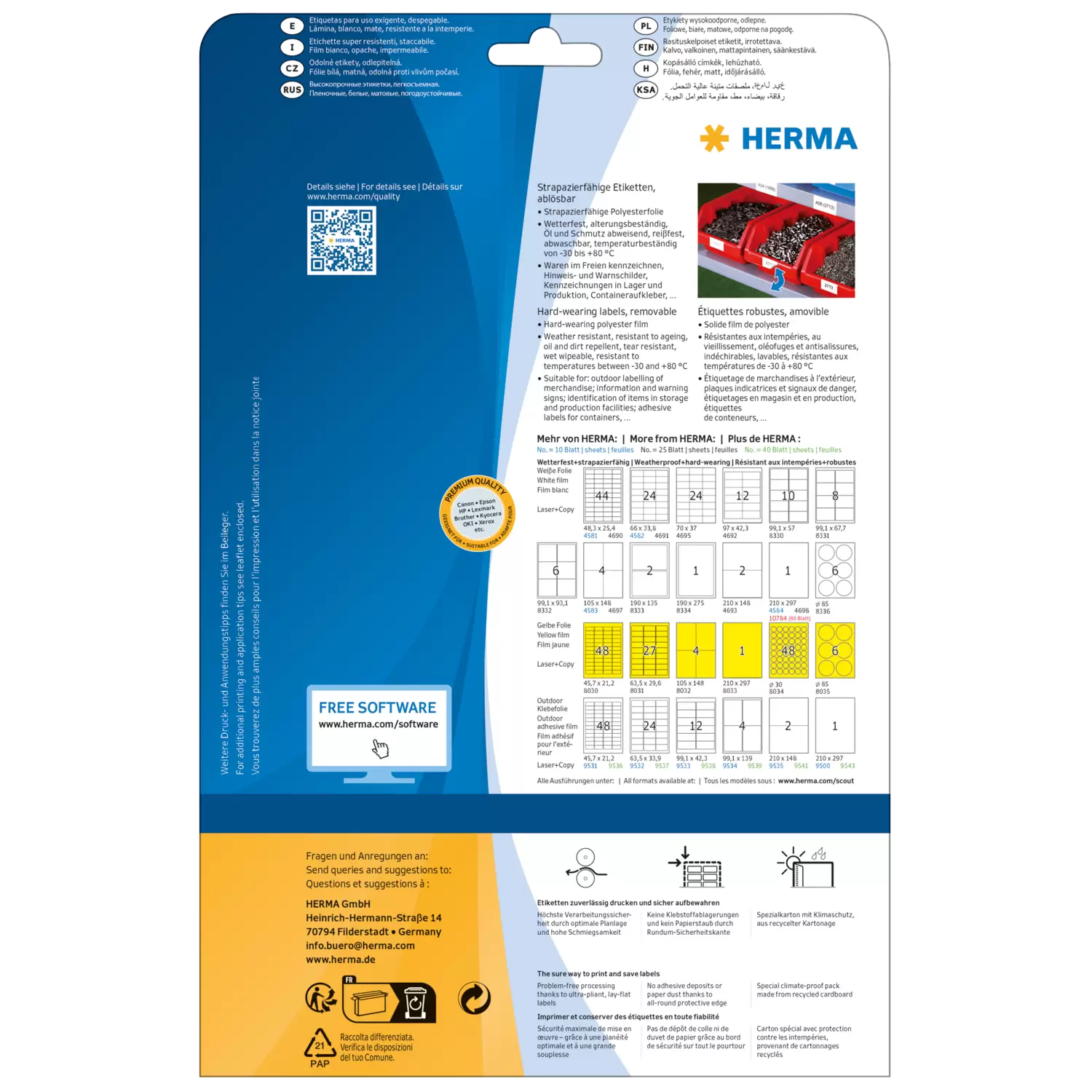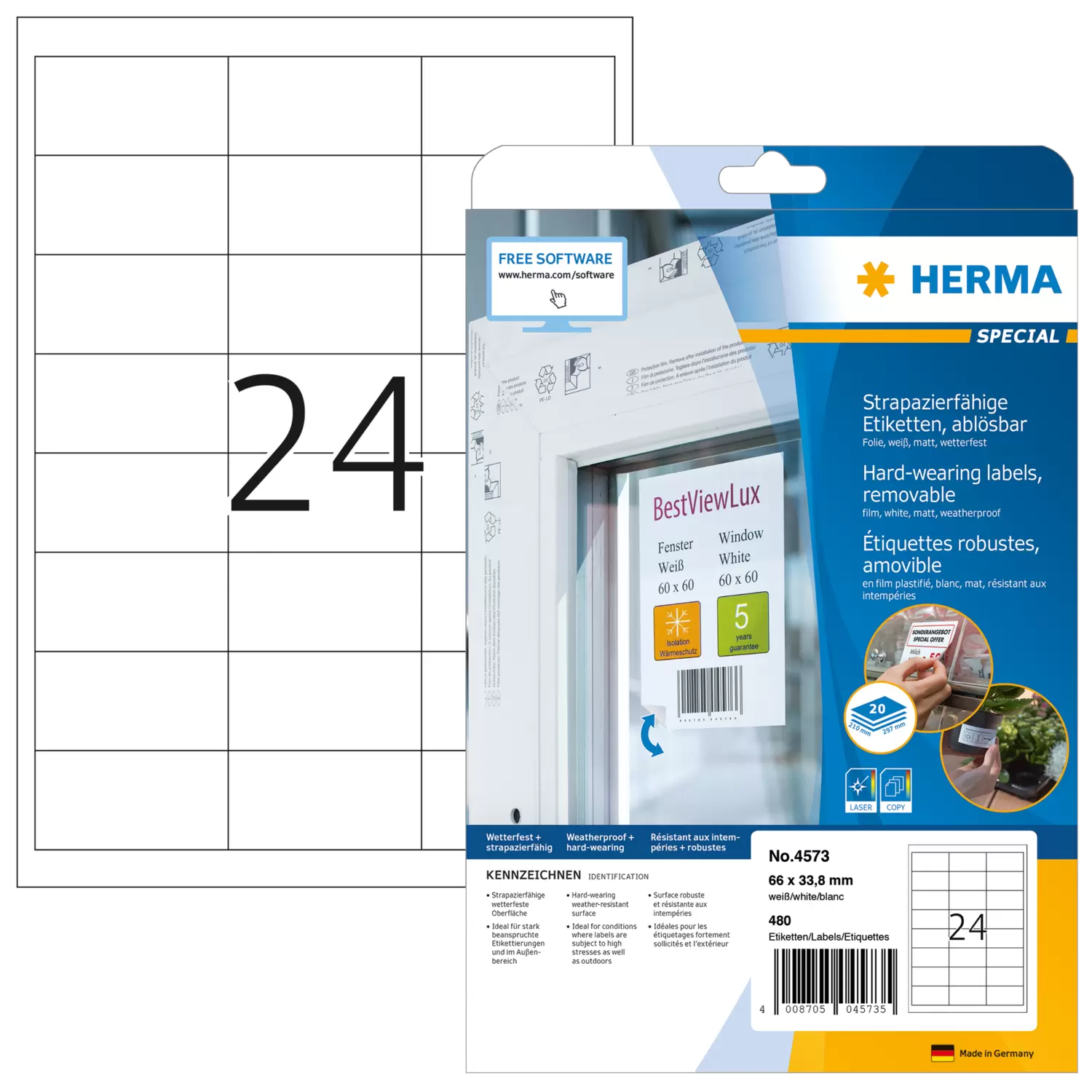 Weatherproof film labels A4, 66,0 x 33,8 mm, white, removable