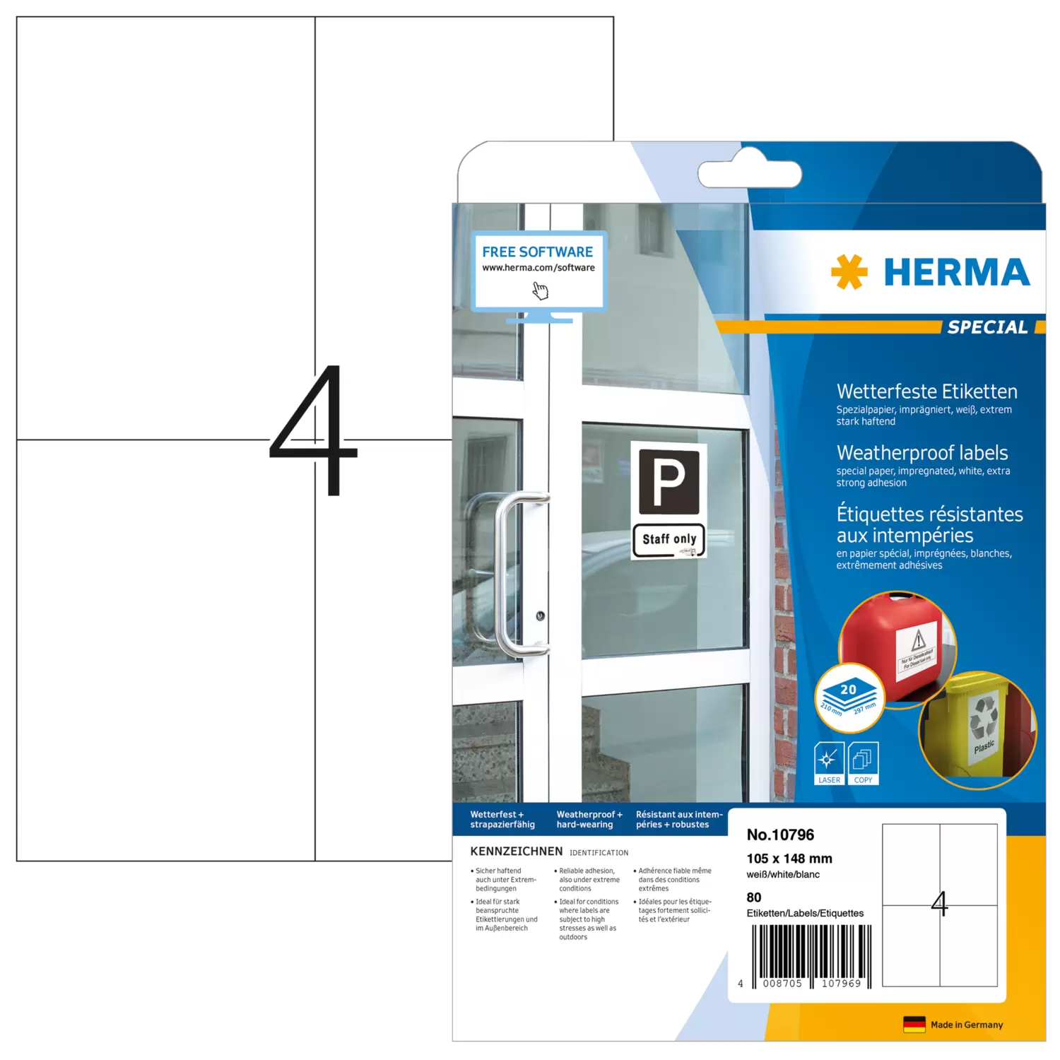 Weatherproof labels A4, 105 x 148 mm, white, extremely strong adhesion, impregnated