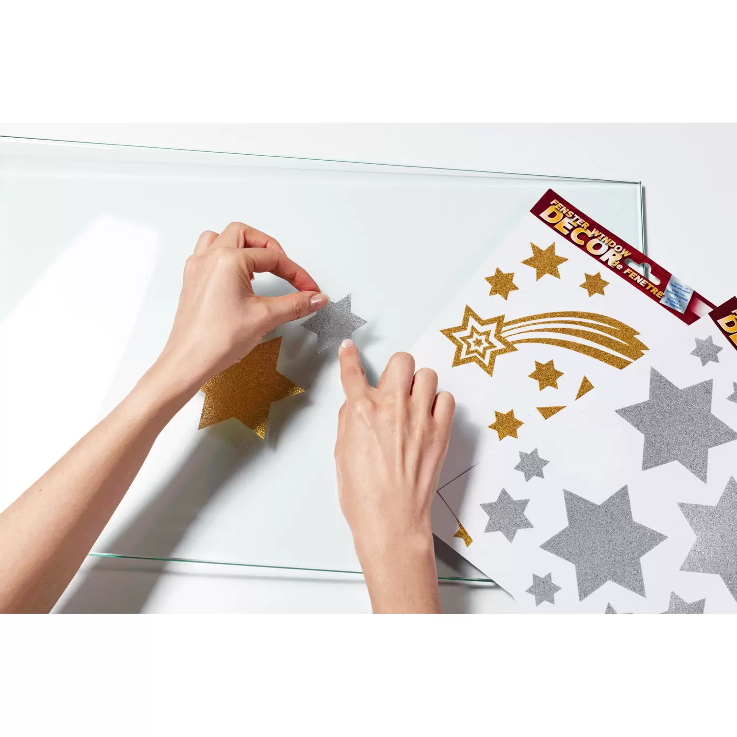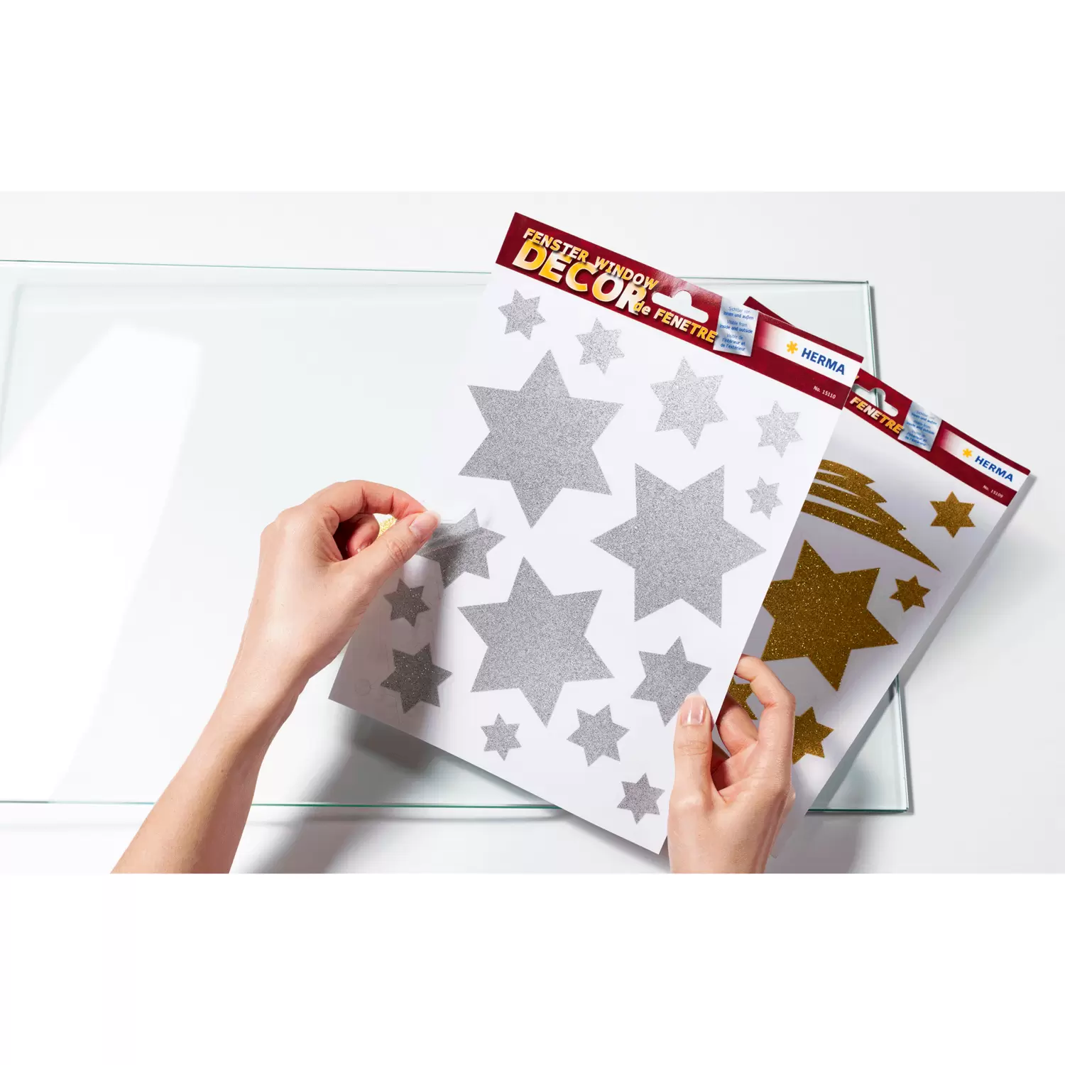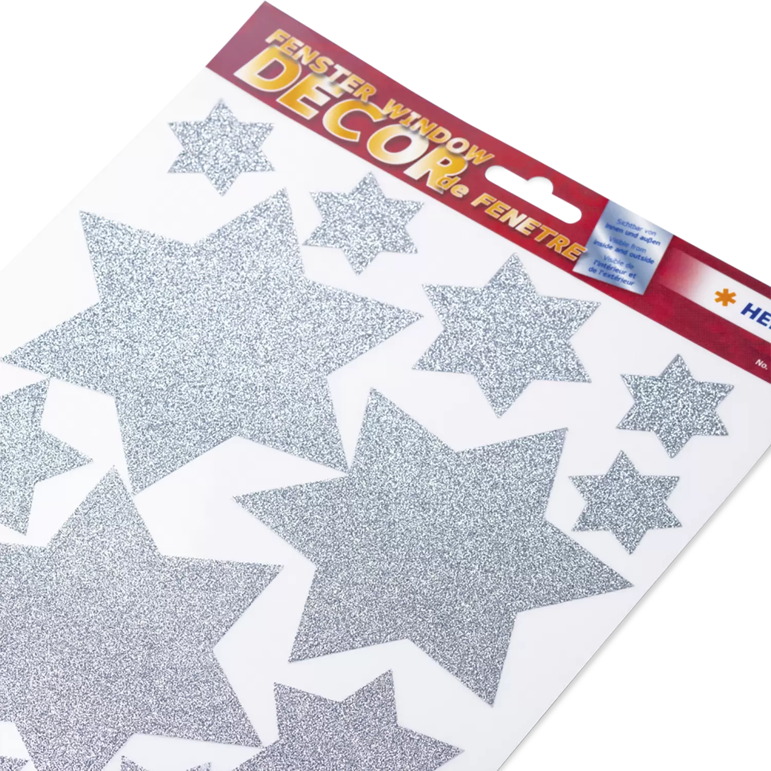 The window pictures Stars Silver are a perfect decoration for the cold season. With the silver glitter foil, they will give any room a warm and festive atmosphere. The self-adhesive film makes it possible to stick and re-stick the window pictures several times, thus discovering new decoration possibilities again and again. The silver glitter foil reflects light, creating a twinkling effect that reminds you of glittering snow or sparkling Christmas decorations. A great window decoration that brightens up the room and is also visible from the outside. Besides the use on windows, they are also suitable for other smooth surfaces such as mirrors or tiles. Design your home according to your wishes and bring the festive mood of winter into any room.
